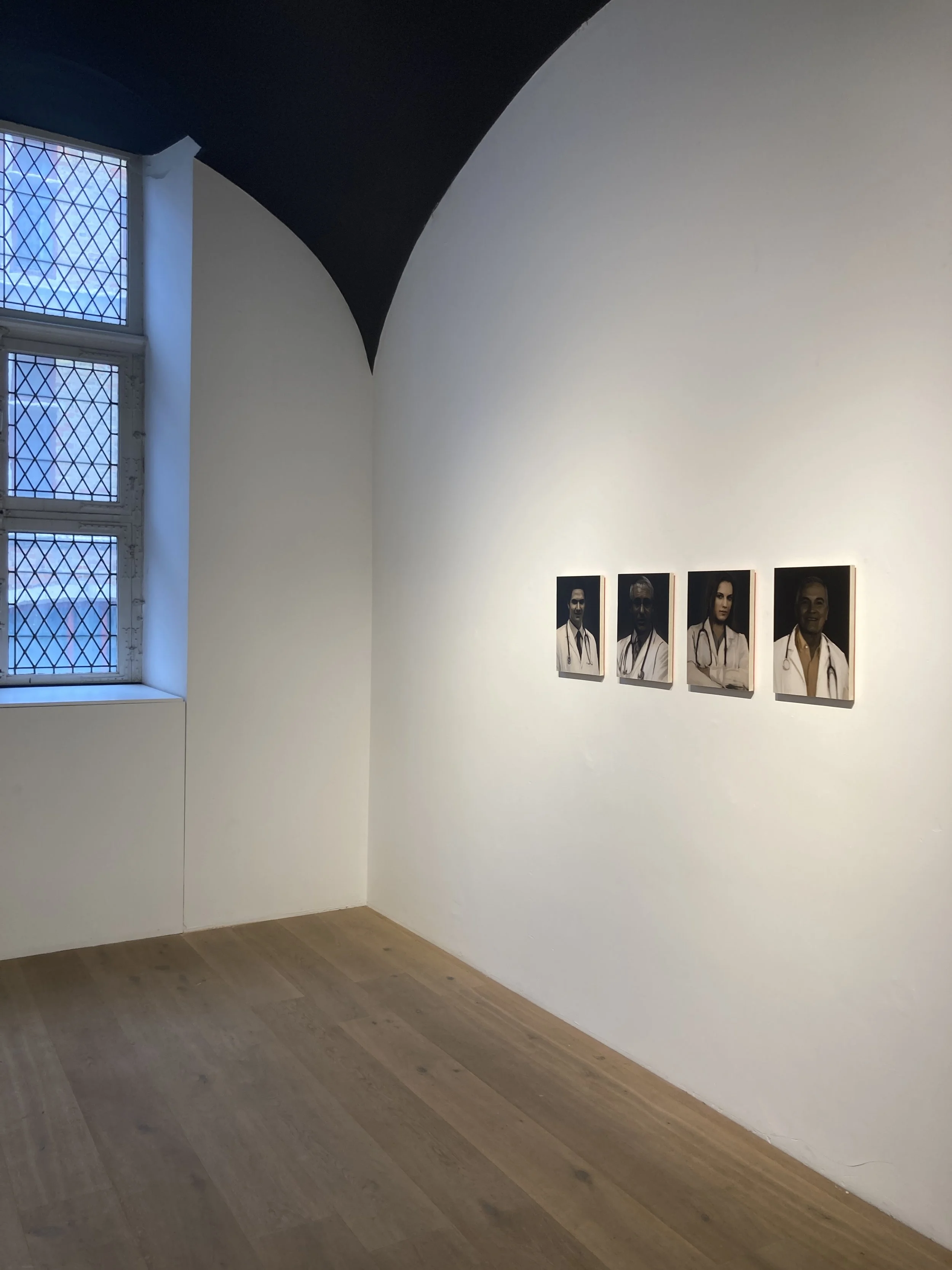 In dit werk word je als toeschouwer bekeken door portretten van dokters. Aan de overkant een portret van een non: vertegenwoordiger van de kerk en in die hoedanigheid ook altijd aanwezig op de schilderijen van anatomische theaters waar Gabriels inspiratie vond. De non controleert de dokters, de dokters onderzoeken. Wij zijn patiënt.
