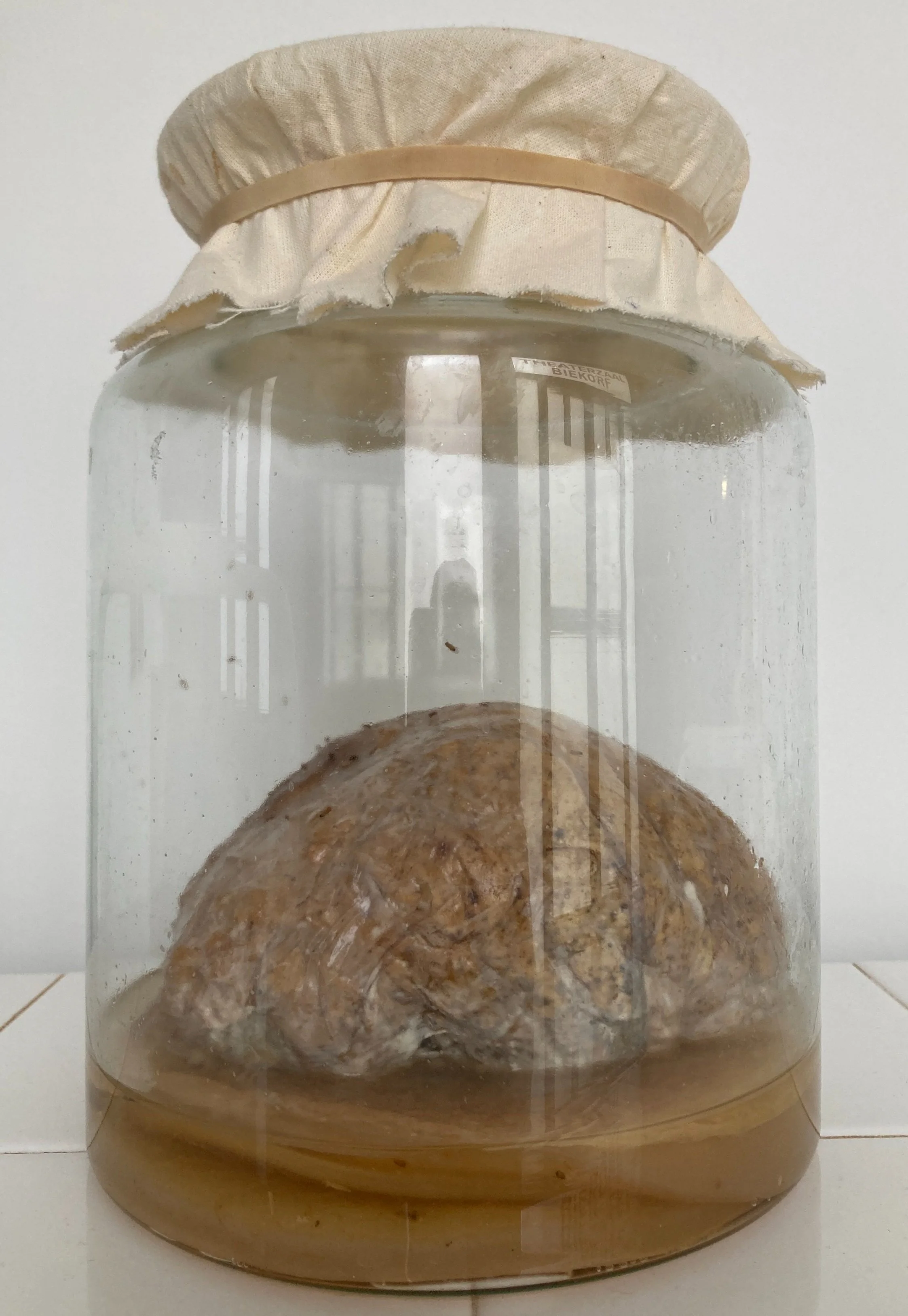 Sculpturen Biekorf Brugge Larynx_69-96-2023Ceramic, scoby, plastic tube7 x 10 x 20 cm Untitled_69-96-2023Ceramic, scoby, glass